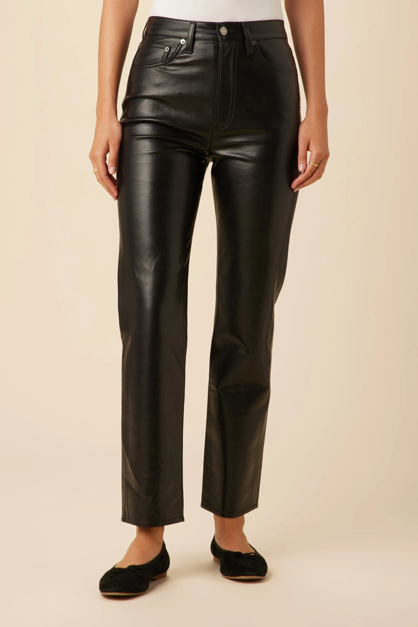 Inspired by two of Agolde’s signature styles, these 90s pinch waist leather pant sit neat at the true waist with a close-fitting top block, easy leg and button fly. We recommend sizing down in this style, as this style will relax as they are worn. We recommend purchasing one size down for a regular fit, or two sizes down for a tighter fit.