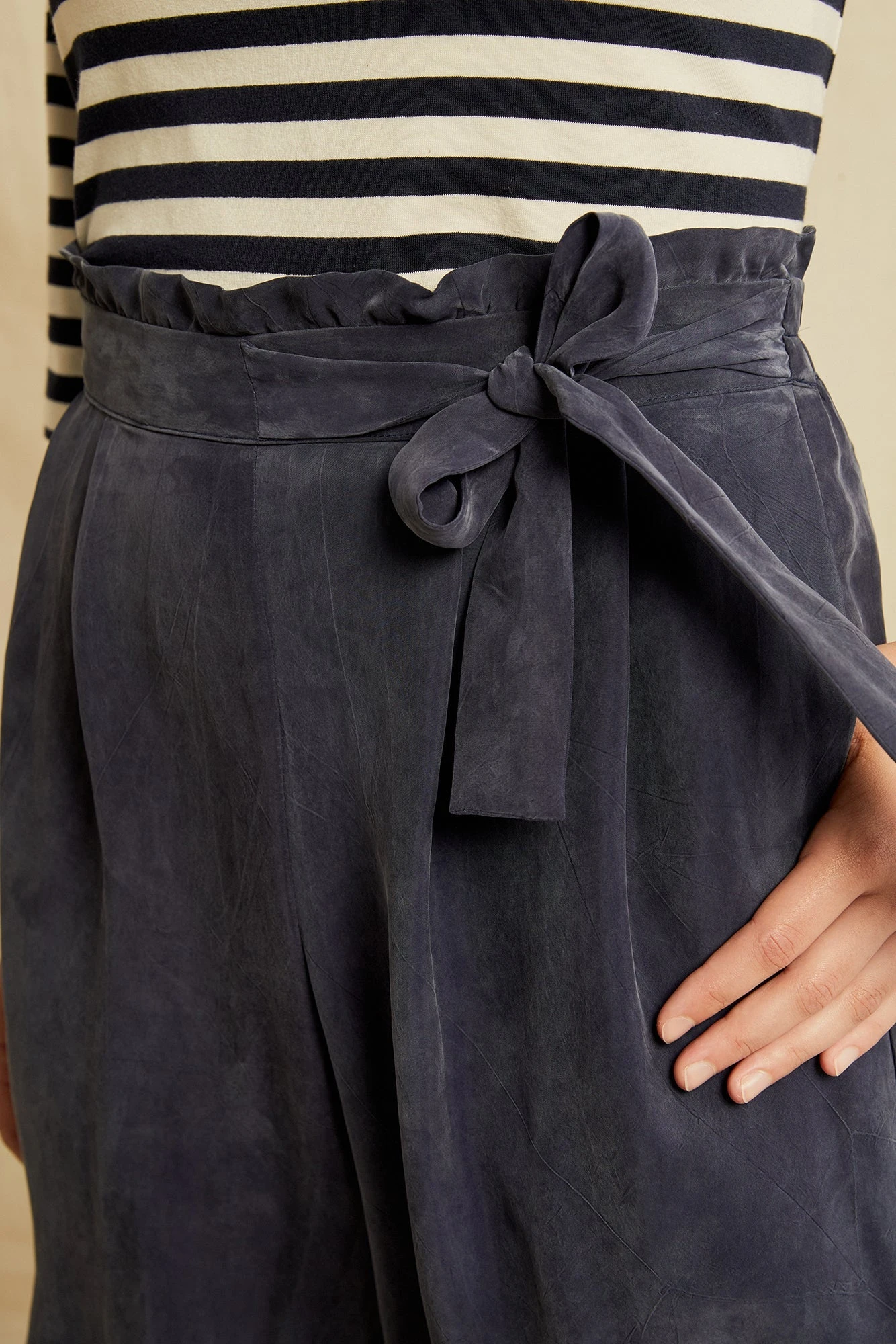 Paper bag style pant with attached side tie belt, made from our silky-soft Cottonseed Cupro.