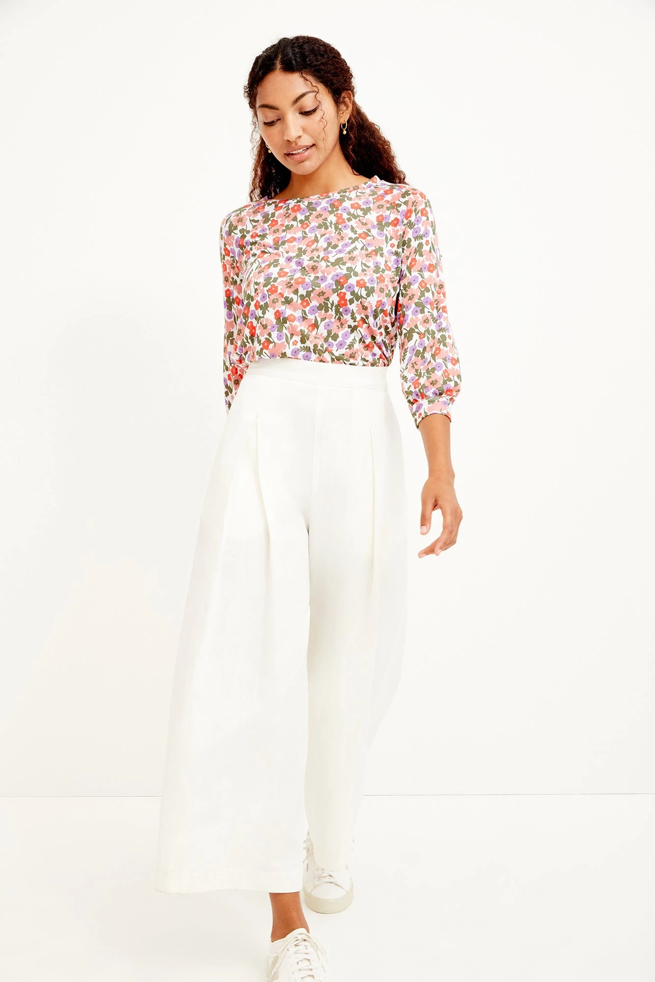 3/4 sleeve raglan tee with gathering at the cuffs for a little added volume. Made entirely from Modal for a luxuriously silky and smooth hand.