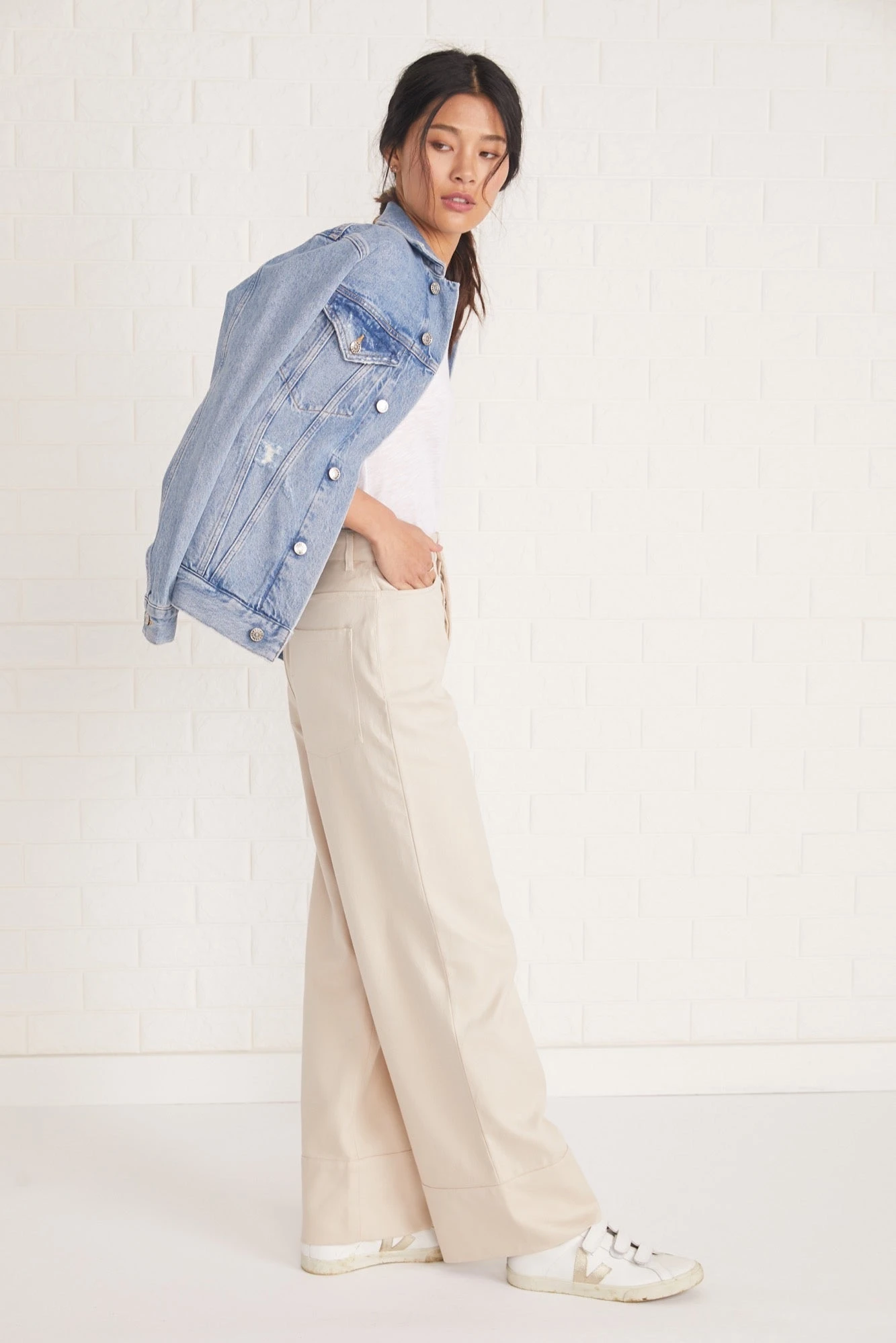 High waisted, straight leg wide pants with a wide hem band made from 100% certified fair trade Organic Cotton.