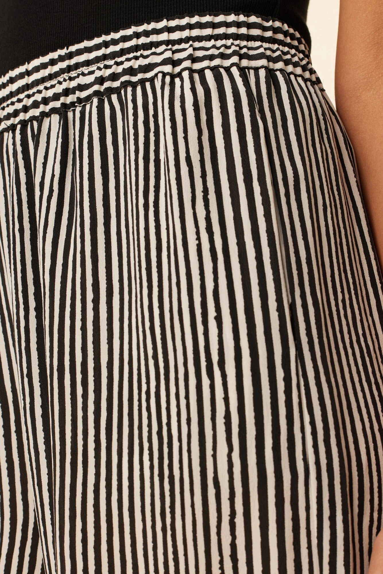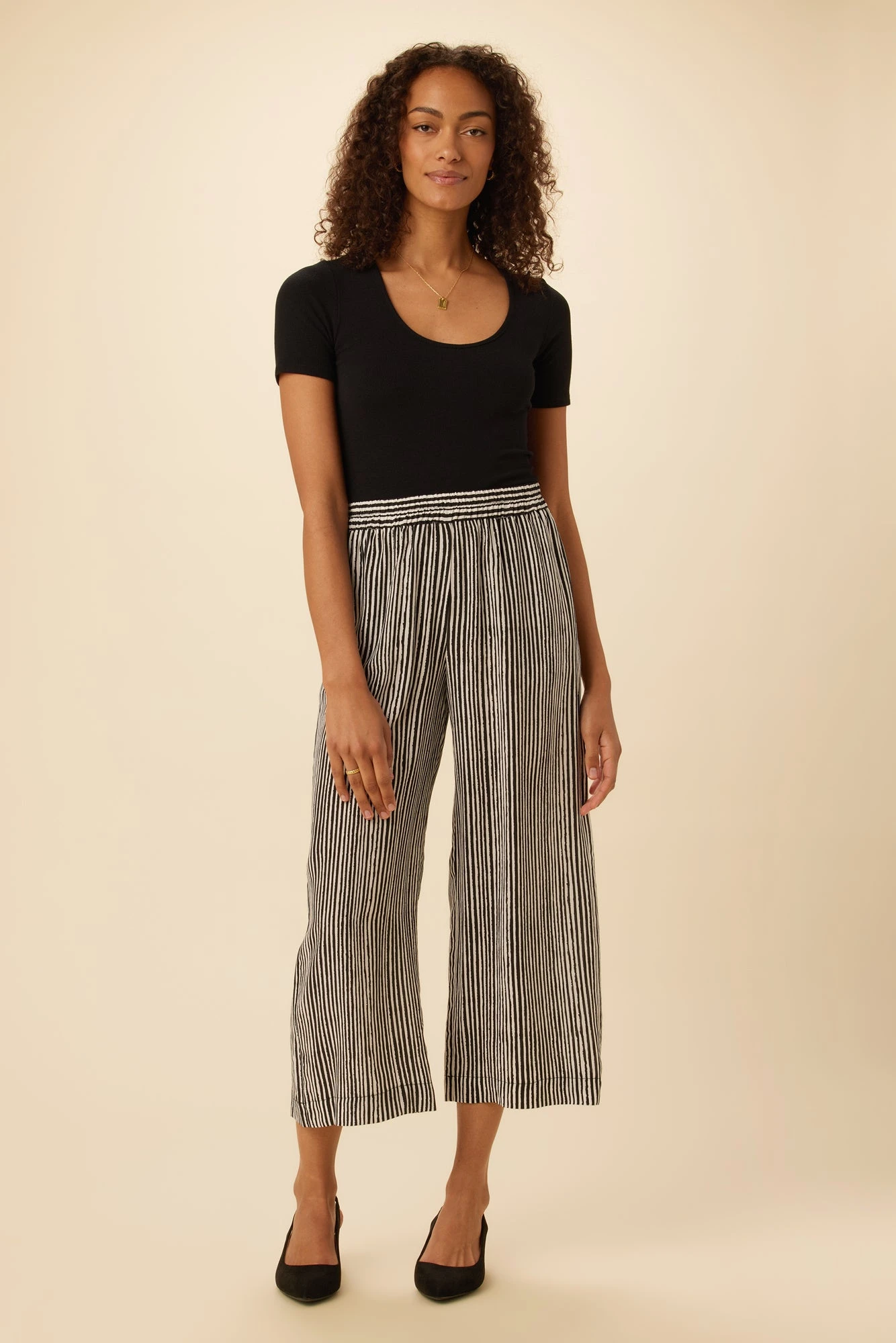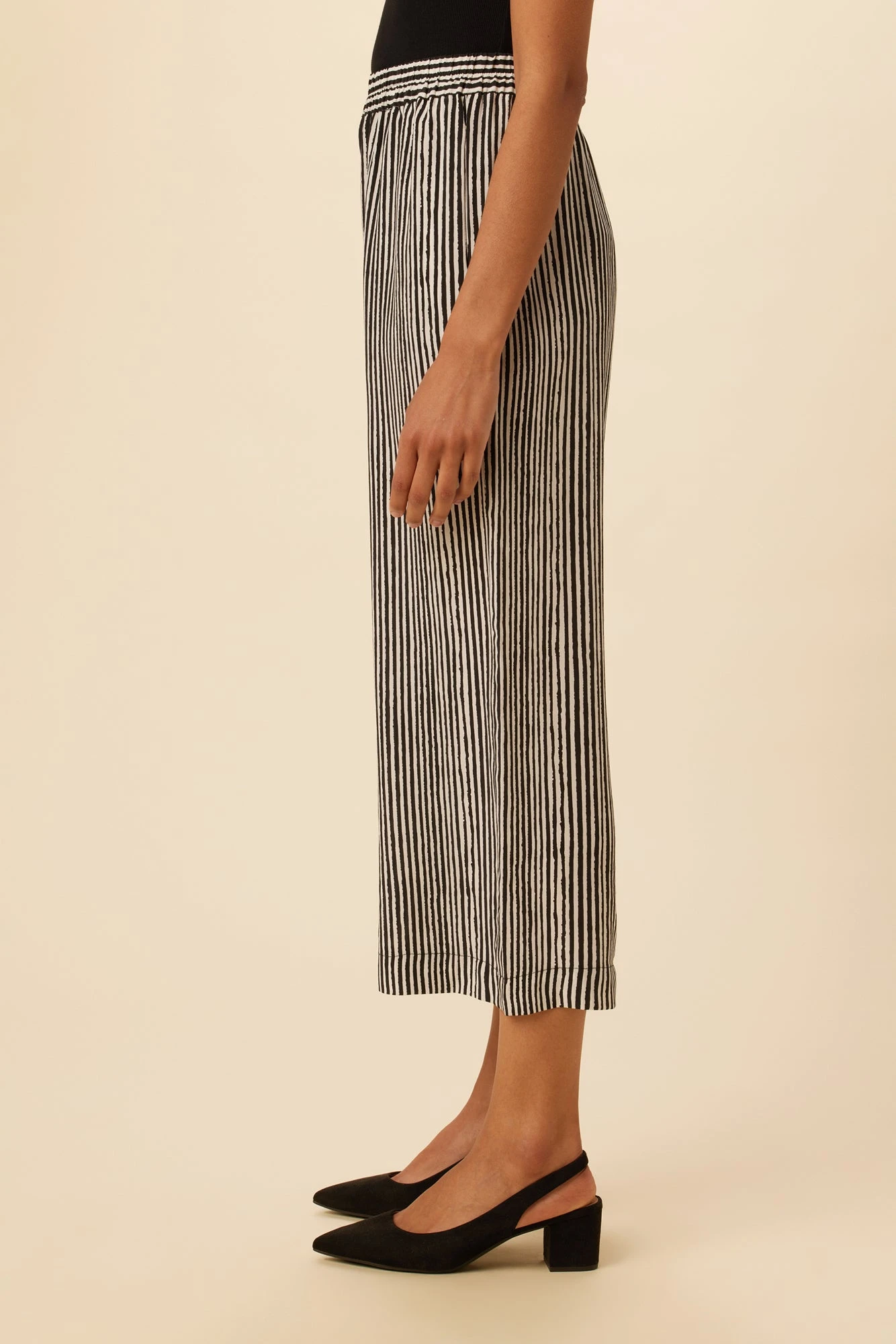 High waisted cropped pants with a straight leg, elastic waist, and side seam pockets. Made in our luxurious washable silk and cut in an easy and flattering silhouette.